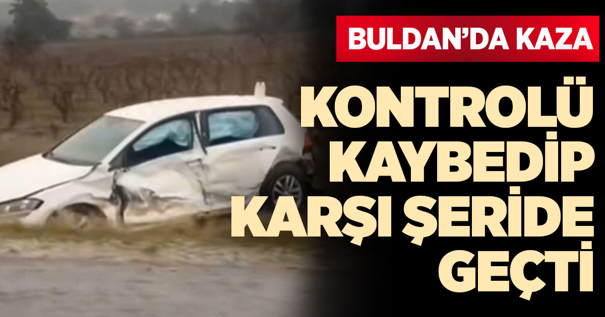 Buldan ilçesinde seyir halindeki araç sürücüsünün kontrolü kaybetmesi sonucu karşı şeritteki seyir halindeki araca çarptı. Çarpışma nedeniyle yol kenarındaki tarlaya savrulan iki araç hurdaya döndü.